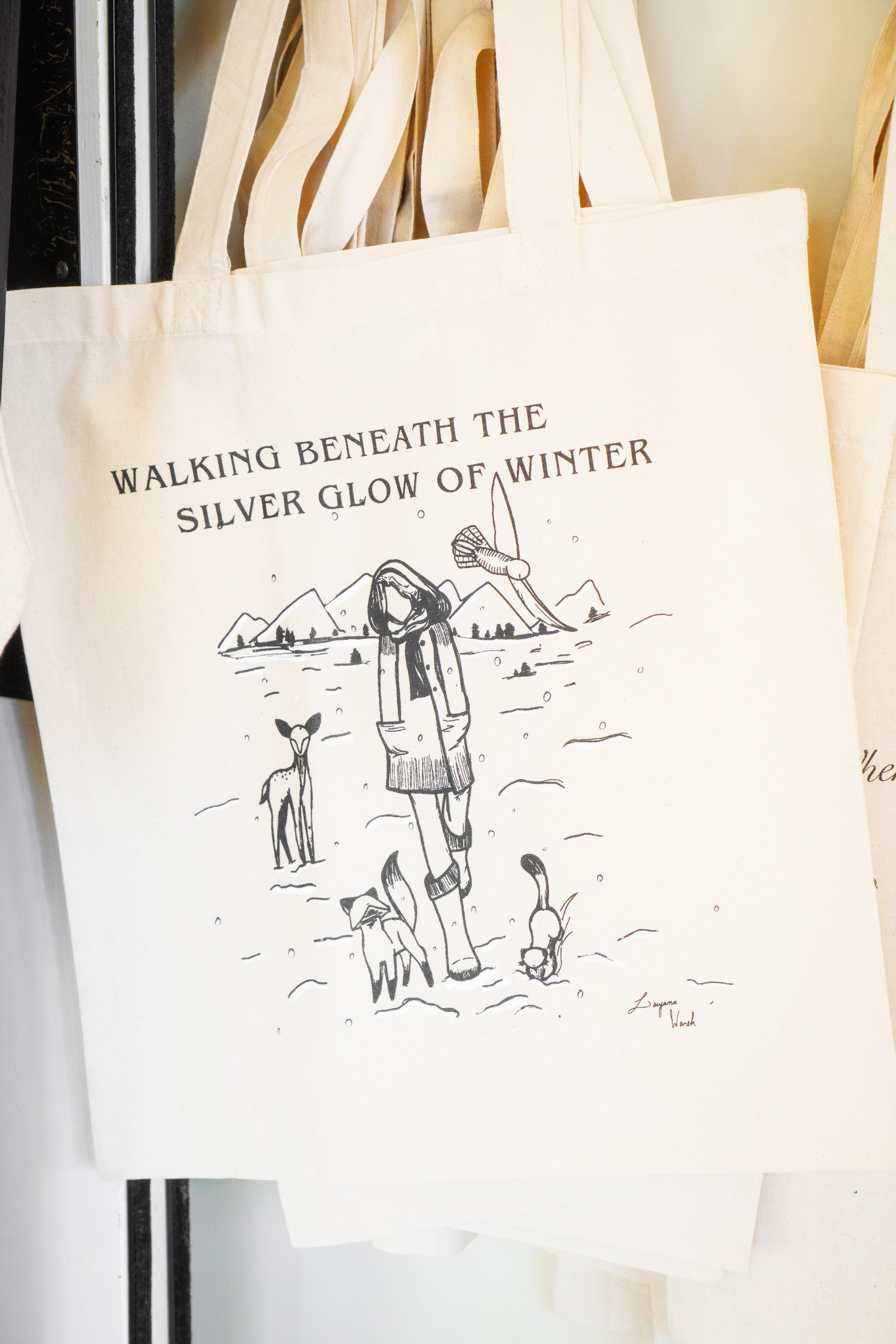 Cotton Winter Tote Bag - "Walking Beneath The Silver Glow of Winter"